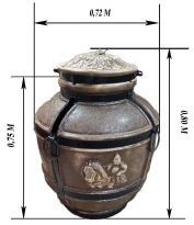 толщина стен ~ 3 – 5 см, высота ~ 0,83-085 м, диаметр ~ 0,73-075 м, вес ~ 120~150 кг горловина ~ 35 – 36 см